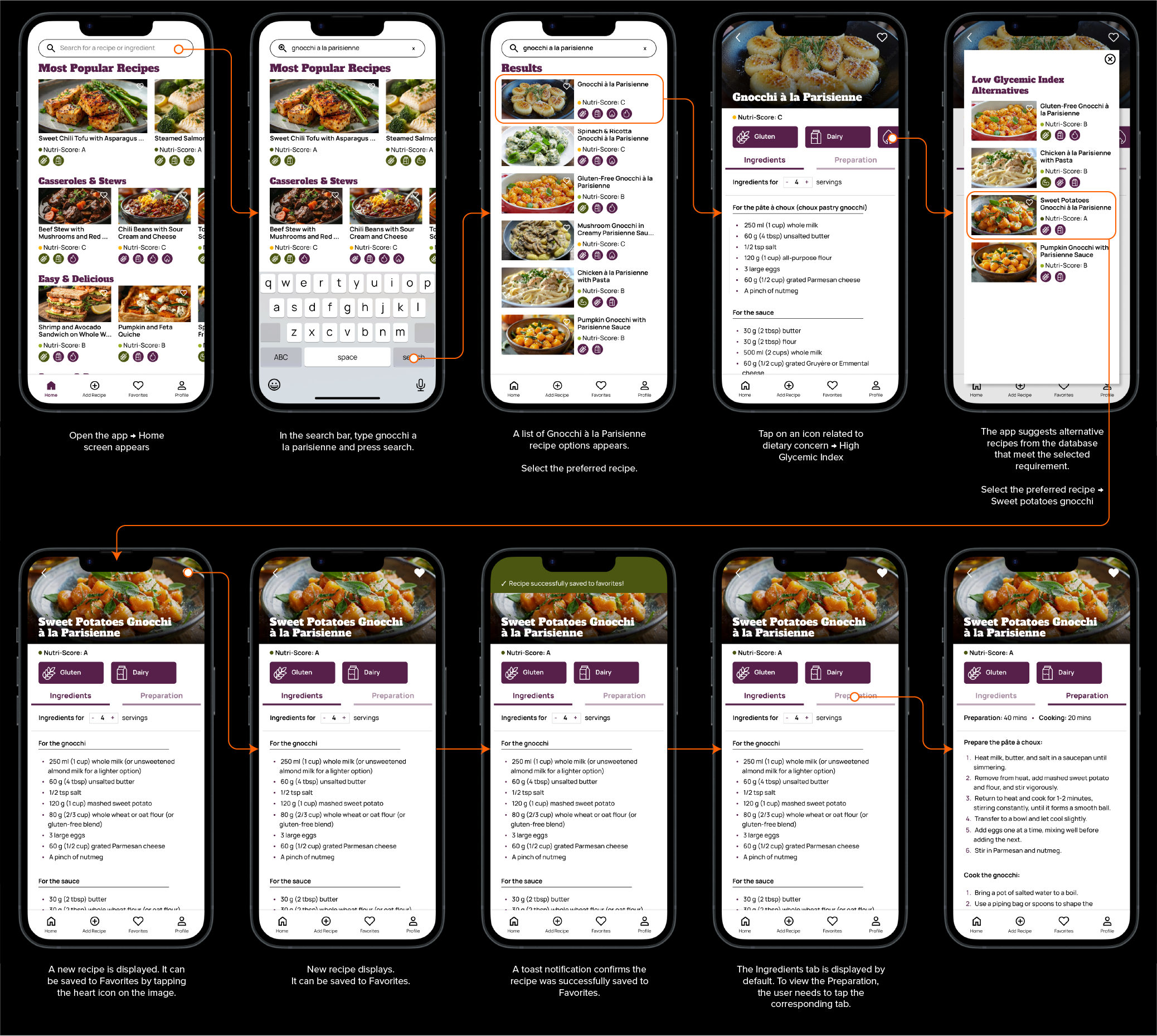 An iterative, user-centered design process for AdaptEat, a recipe app that personalizes dishes based on dietary needs and nutritional goals. The project involved a competitive benchmark, sketching, wireflows, a mood board, and low and high-fidelity prototypes, refined through an iteration phase based on feedback. Finally, I created a Design System to ensure a consistent and scalable UI. This project showcases my ability to balance research, usability, and aesthetics through a structured yet flexible design process.
